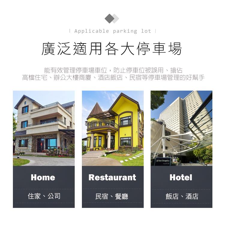 使用壽命長等特點,能有效管理停車場車位,防止停車位被誤用、搶佔,是高檔住宅、商廈、酒店、飯店等停車場管理的好幫手。