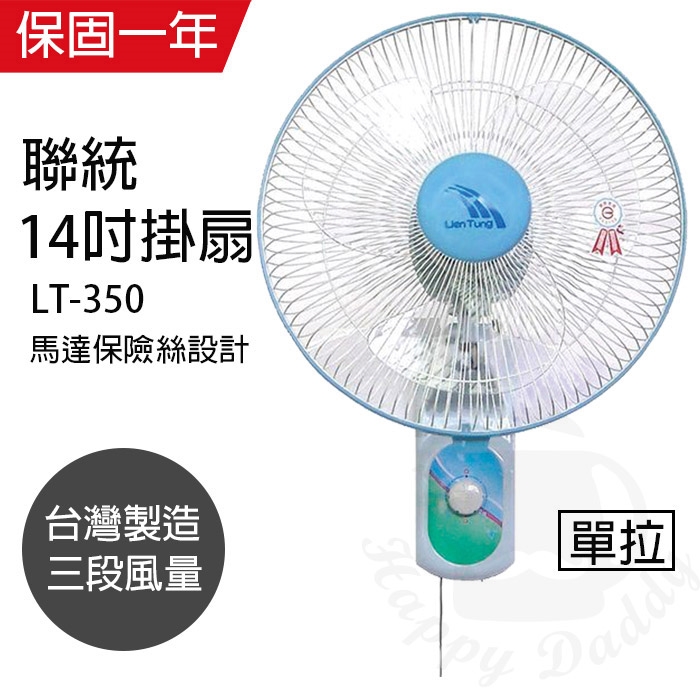 【聯統】台灣製造大風量14吋單拉掛壁扇(LT350)