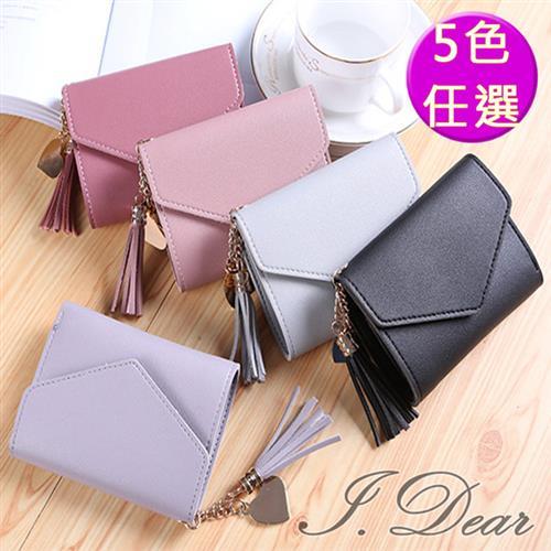 【I.Dear】韓版淑女愛心流蘇吊飾荔枝文短夾零錢包(4色)現貨