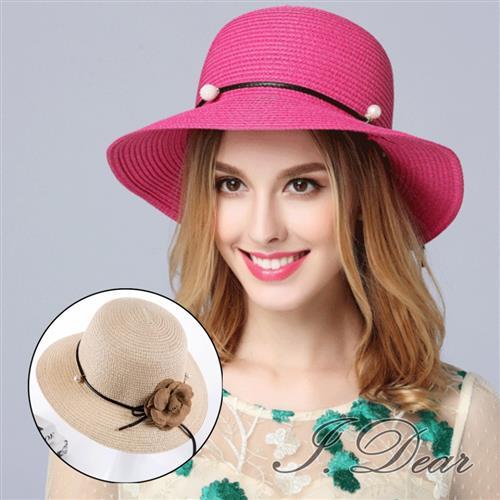 【I.Dear】韓國春夏遮陽花朵珍珠大帽簷遮陽草帽(5色)現貨