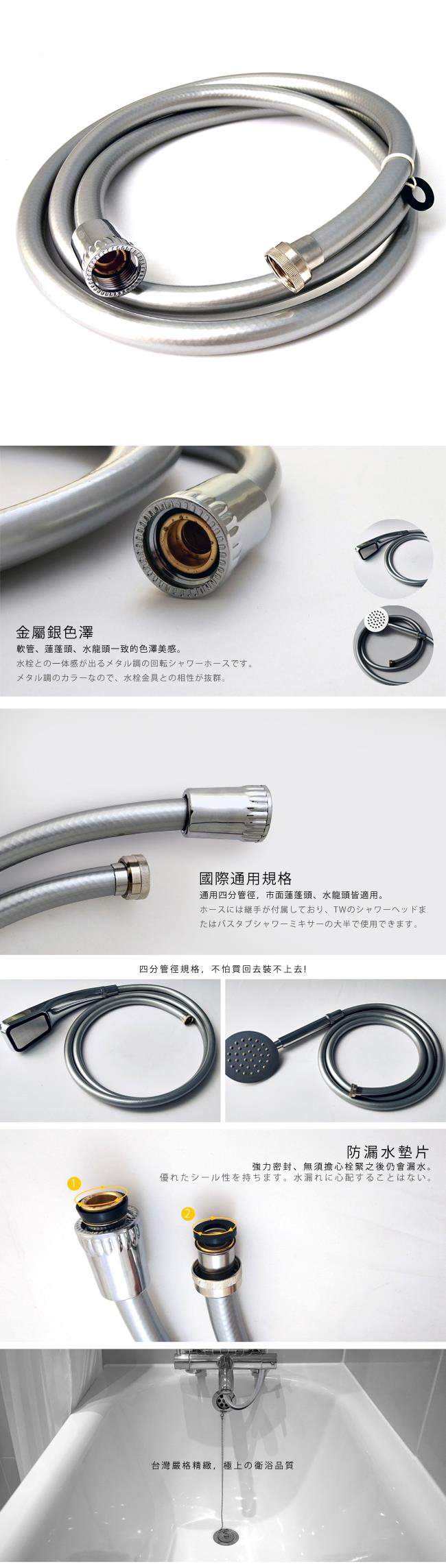 升級家中蓮蓬頭水管!優質的日式軟管是你的最佳選擇:加長加厚、防腐抗冷耐高溫、抗拉伸防打結,使用壽命更長!國際通用款,市售蓮蓬頭、花灑均適用。