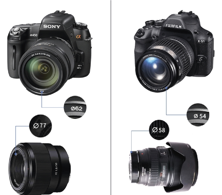 購買前請確定購買的口徑大小,鏡頭上一般都有標註(例如:Φ82就表示口徑是82mm)