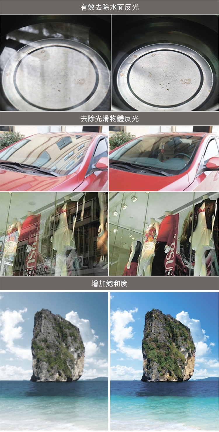 ●提高顏色飽和度.對比和減少反光:此為本賣場偏光鏡的主要功能!讓天空拍得更藍.去除水面/玻璃的反光很有效!