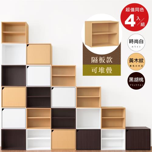 《HOPMA》日式二層櫃(4入)無門有隔層 台灣製造 儲藏收納 置物雙格書櫃