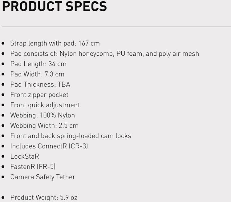 通過高性能材料和硬件,我們更新了您最喜愛的Blackrapid經典款背帶,採用纖細,筆直,低調的襯墊和簡單的前端調整。