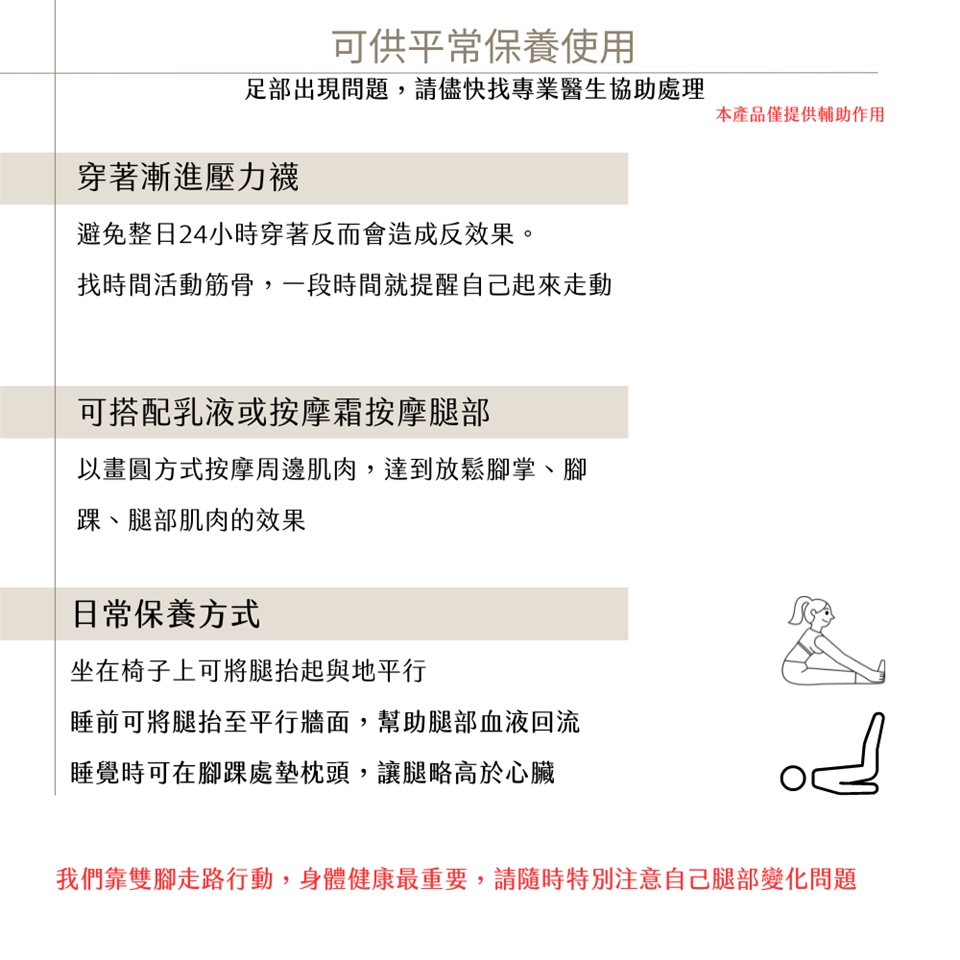 (本商品屬於保健商品,不是醫療器材,如果已經有靜脈曲張 or 淋巴水腫請先諮詢醫師)