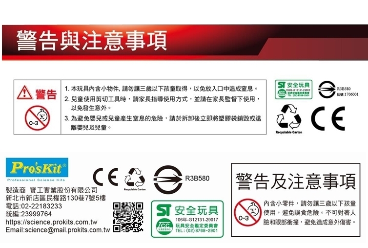 1. 本玩具內含小物件,請勿讓三歲以下孩童取得, 以免放入口中造成窒息。