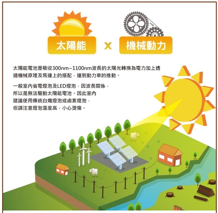 ★ 科學原理:太陽能轉電能、動力機械力學