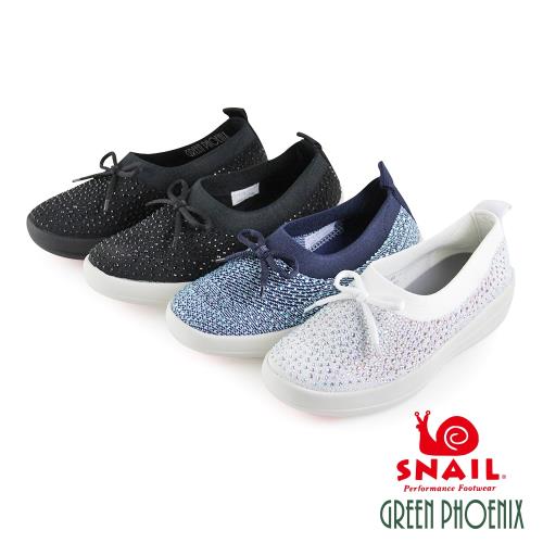 SNAIL蝸牛 女 休閒鞋 蝴蝶結 水鑽 襪套式 輕量 平底U3-21861