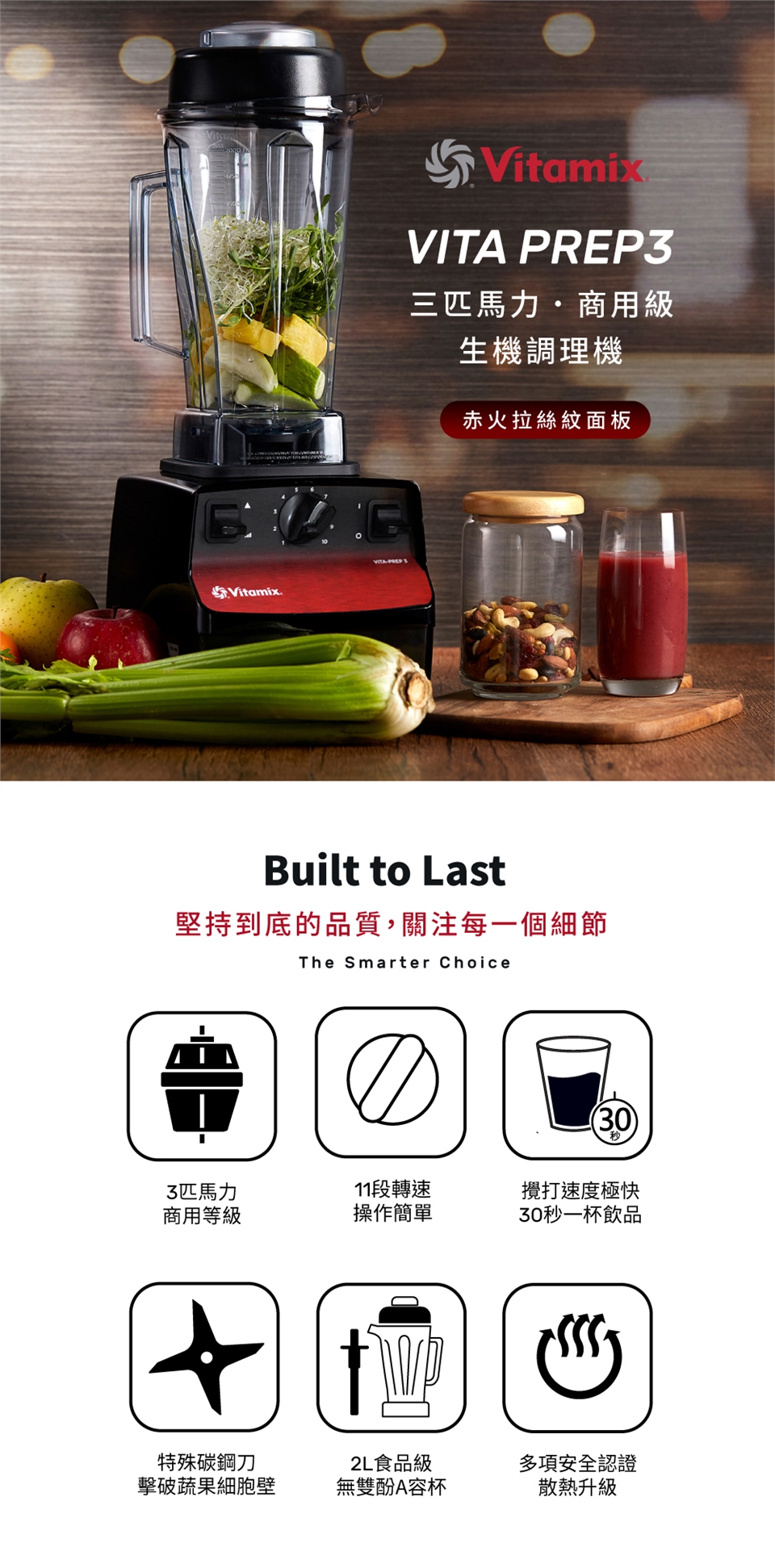 美國Vitamix三匹馬力生機調理機-商用級台灣公司貨-VITA PREP3
