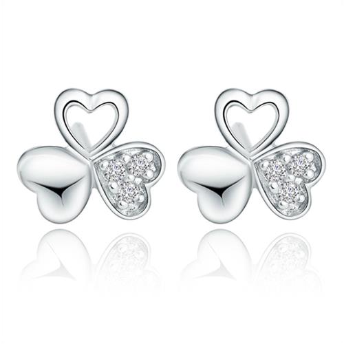 【I.Dear Jewelry】正白K-愛心三葉草-幸運草造型愛心鑲鑽銀色耳針耳環(現貨)