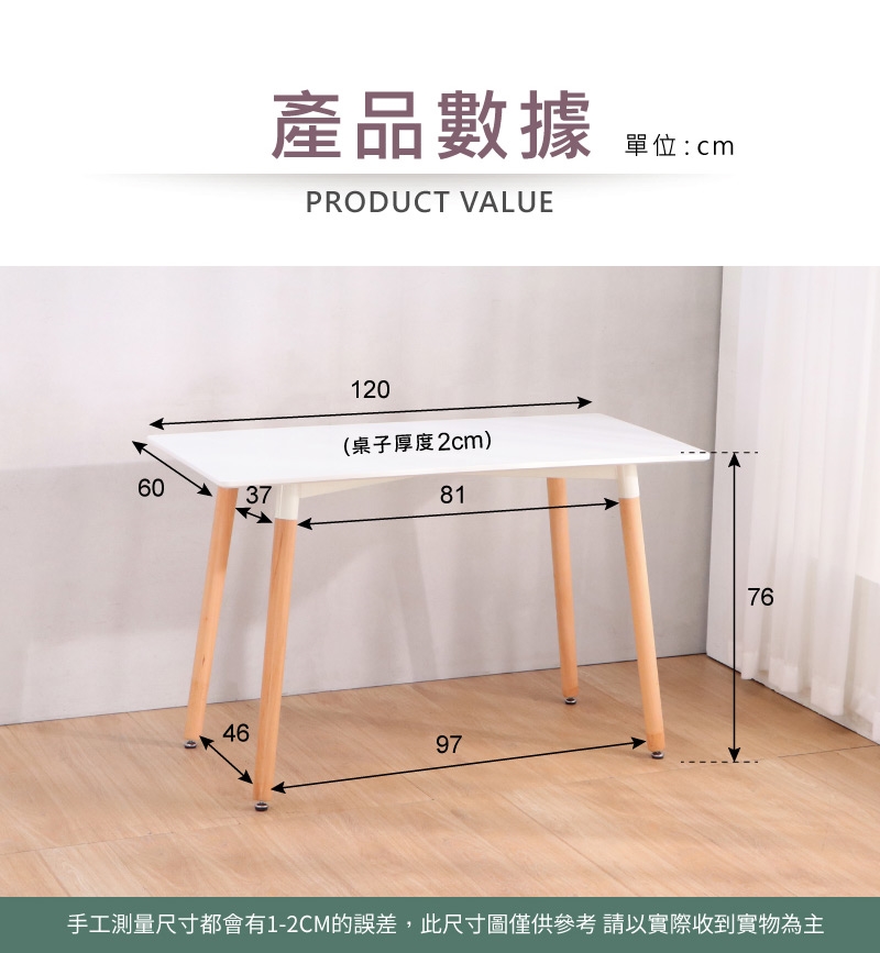 商品尺寸:寬 60公分、長 120 公分、高 77 公分(詳見圖面標示)
