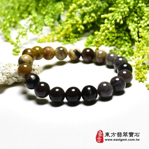 木化石手鍊、樹化玉手鍊(木化石珠子、樹化玉珠子,珠徑約10mm,20顆珠,OWO048) 。【東方翡翠寶石】