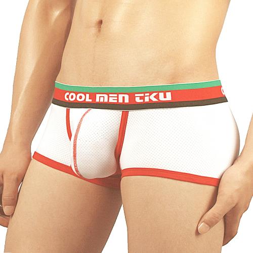 TIKU 梯酷 ~ 透氣交織棉 寬版超激凸平口男內褲 - 白 (WN1870)