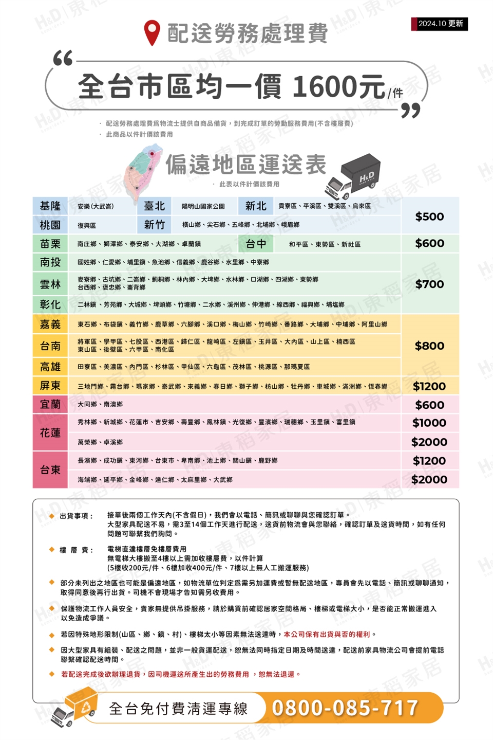 (3) 舊傢俱搬運下樓:須加價搬運,下單後致電02-2678-8868,告知需增購舊傢俱搬下樓服務,由物流報價給您。