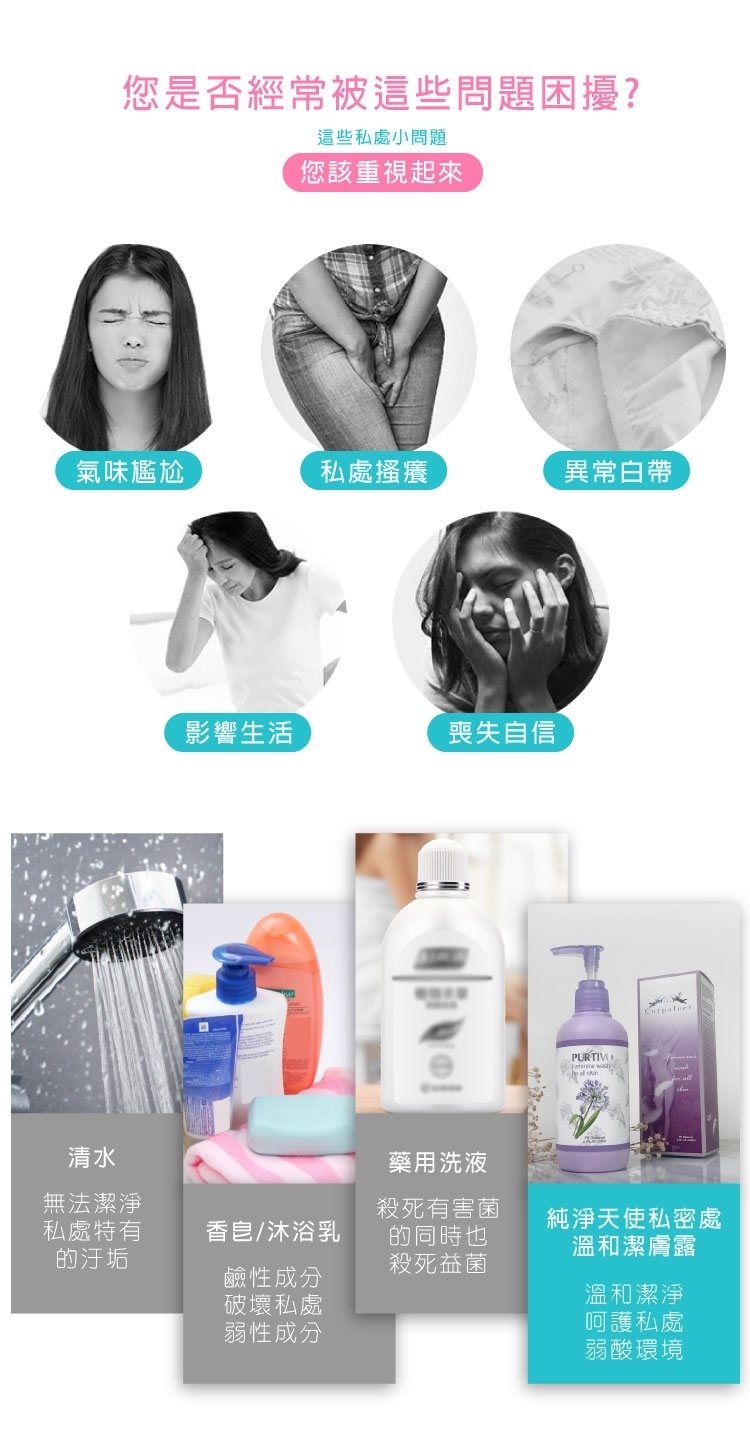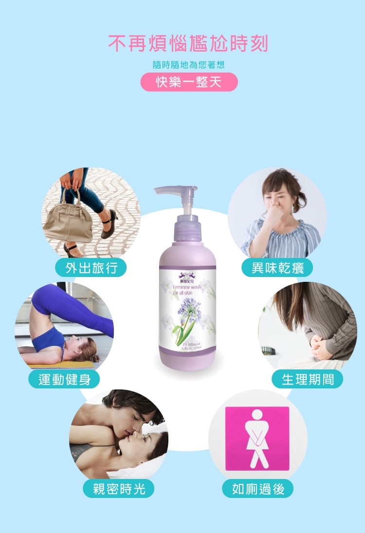 取適量無須稀釋,從外陰部肌膚由前往後到股溝間潔淨後,再以清水洗淨即可。可天天使用。