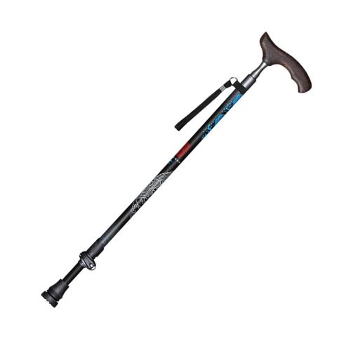 PUSH!戶外用品可伸縮拐杖老人拐杖碳纖維手杖登山杖雞翅木手柄藍色P117-1