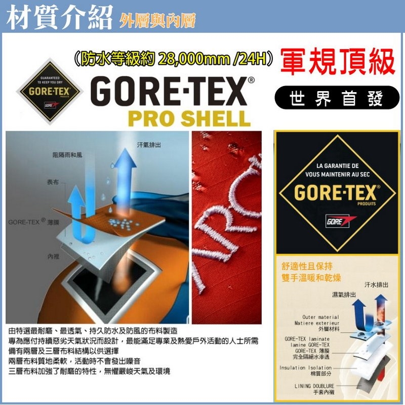 ◆材質:材質:一級軍規(GORE-TEX)超特級防水透氣膜+美國