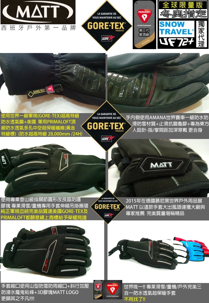 西班牙世界一級的專業防寒手套大廠及冬奧指定品牌 MATT (世界頂尖好手一致推從),