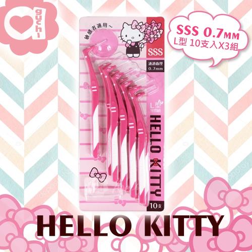 Hello Kitty 凱蒂貓 L 型牙間刷 1sss 0.7mm 10支入 X 3 組 極細尺寸 附帽蓋(台灣製)