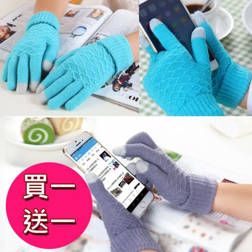 E.City_(買一送一)韓版針織菱紋觸控戶外保暖手套