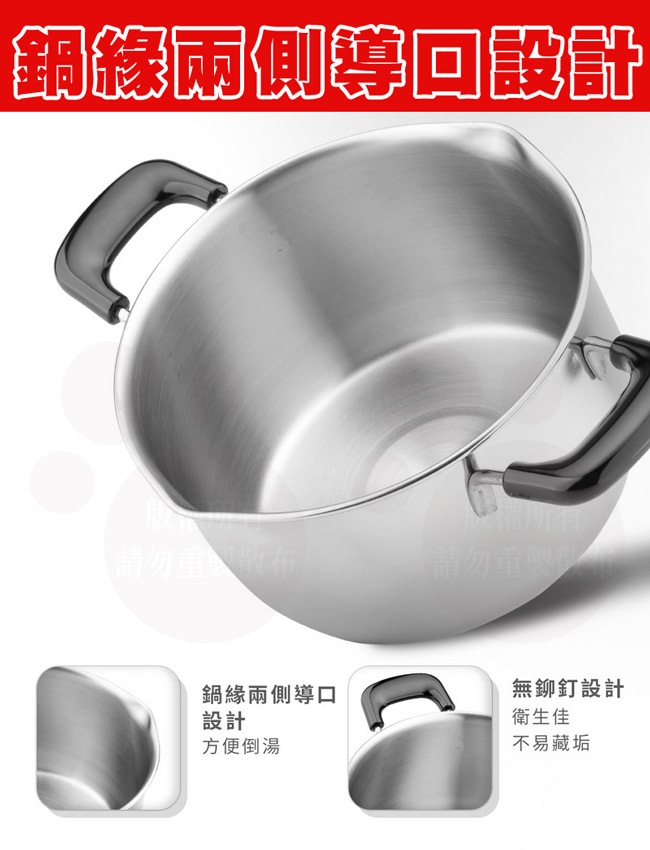 ◎鍋緣兩側導口設計,方便倒湯