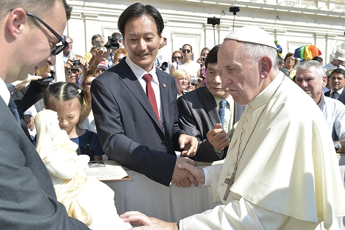 2016年9月14日梵諦岡教宗 方濟各 接見並典藏羅廣維鹽雕作品