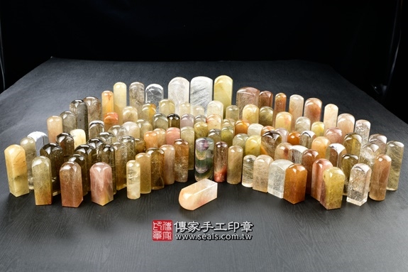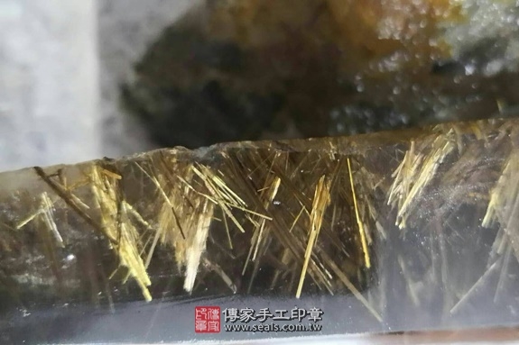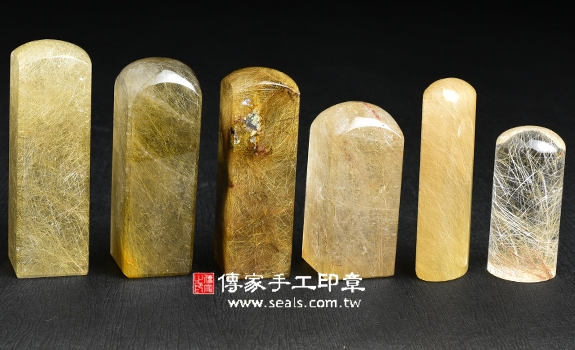 傳家手工印章印章材質示意圖:頂級黃髮晶(第四款) 印章照片示意圖