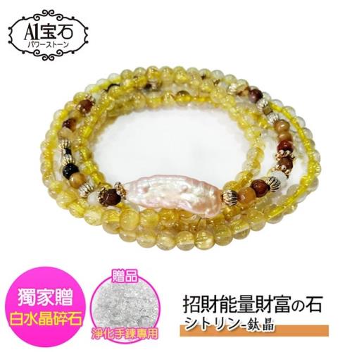 【A1寶石】5A頂級鈦晶手鍊-24k金色能量極強5mm-招財開運旺事業貴人運(贈白水晶碎石)