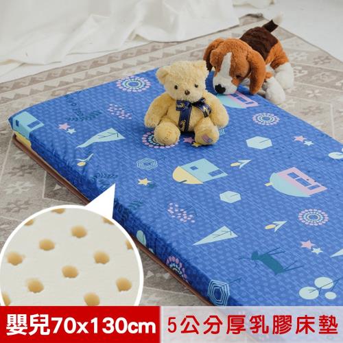 米夢家居-夢想家園-冬夏兩用馬來西亞進口100%天然乳膠嬰兒床墊-深夢藍(70X130cm)
