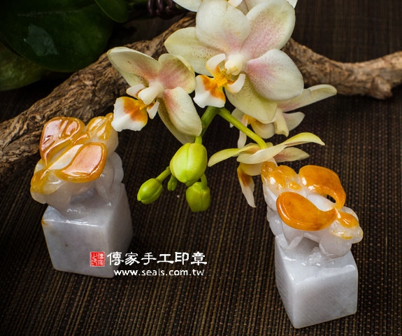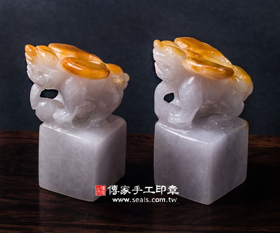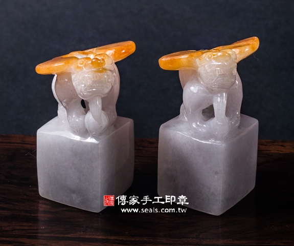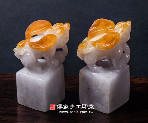 傳家手工印章印章材質示意圖:頂級白底青黃翡貔貅緬甸玉 印章照片示意圖