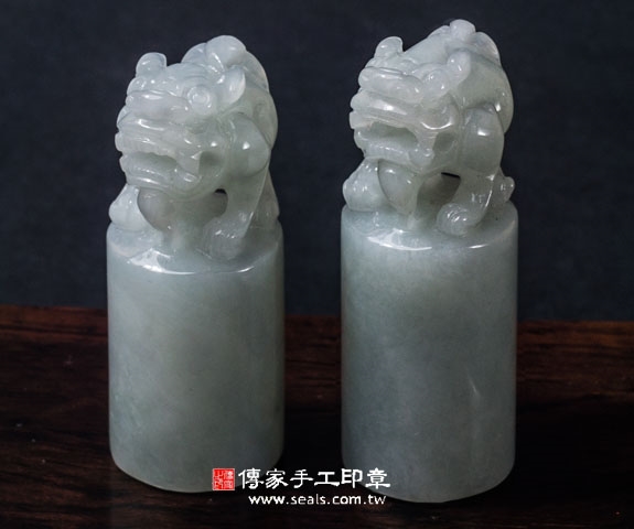 傳家手工印章印章材質示意圖:頂級糯豆種緬甸玉翡翠 印章照片示意圖