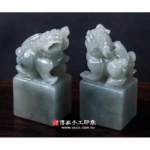 頂級油青糯豆種貔貅翡翠開運印章印鑑《全手工噴砂》六分正常高度,單章。全配TRD-414