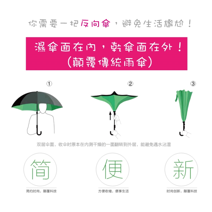 品名:生活良品-C型雙層海軍紋手動反向傘