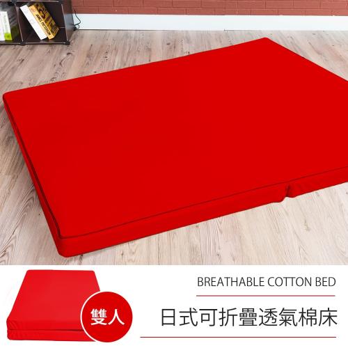 莫菲思 相戀 日式可折疊超厚感8CM透氣二折棉床-紅色(雙人)
