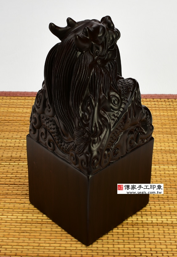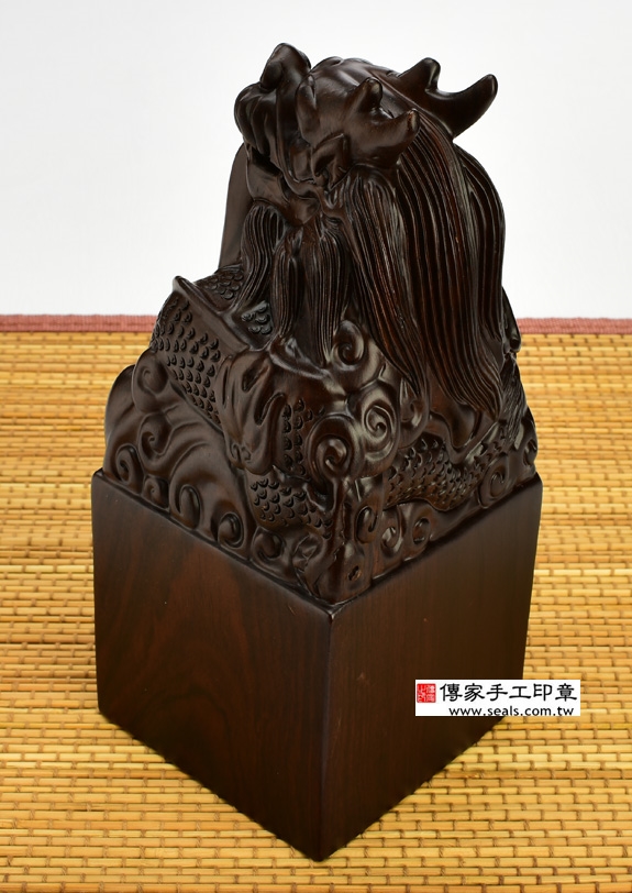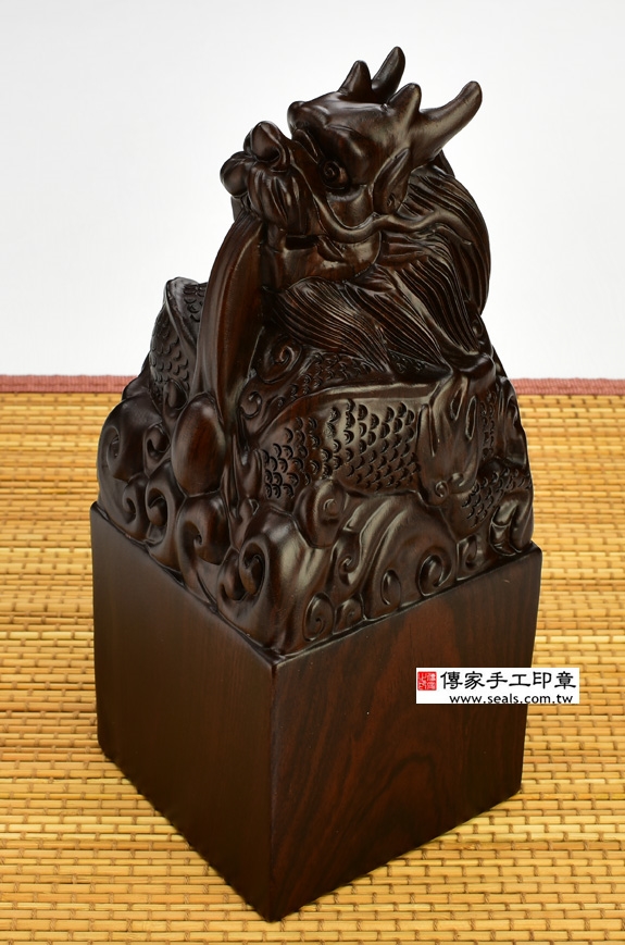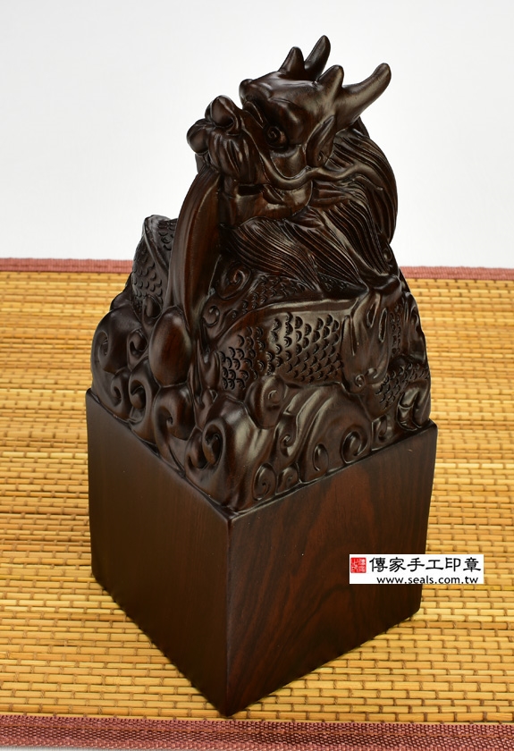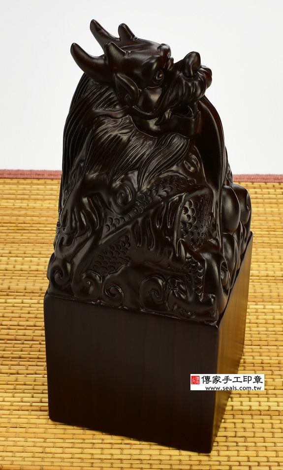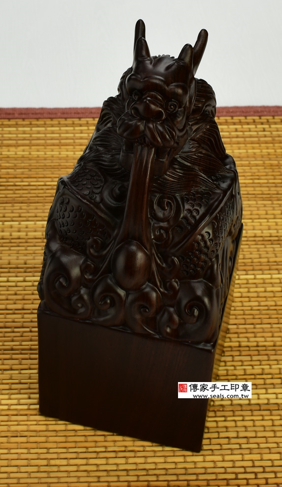 傳家手工印章印章材質示意圖: 頂級黑檀木精雕龍吐珠廟章(一)示意圖