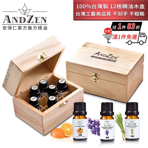 【ANDZEN 安得仁】天然草本精油10mlx3瓶+台灣製精油木盒(可裝12瓶)
