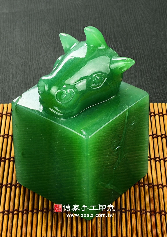 一.品名:頂級手鐲料東菱玉精雕獨角大仙廟章。(三吋印章、高度約12公分)