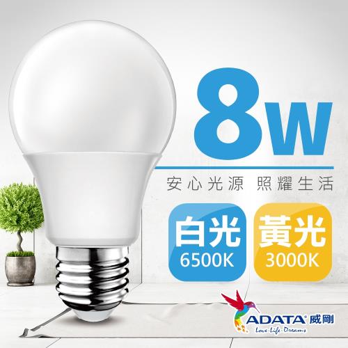 【ADATA威剛】8W 大廣角高亮度LED燈泡 (白光/黃光)
