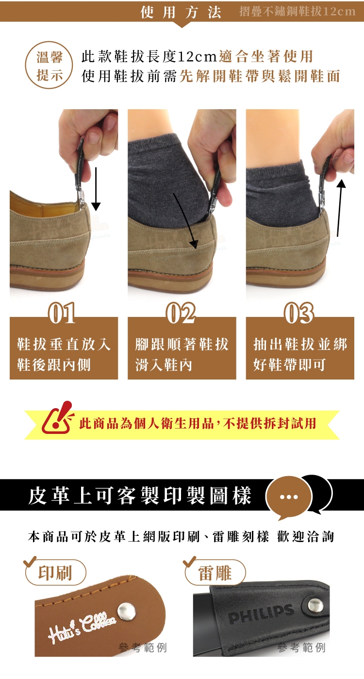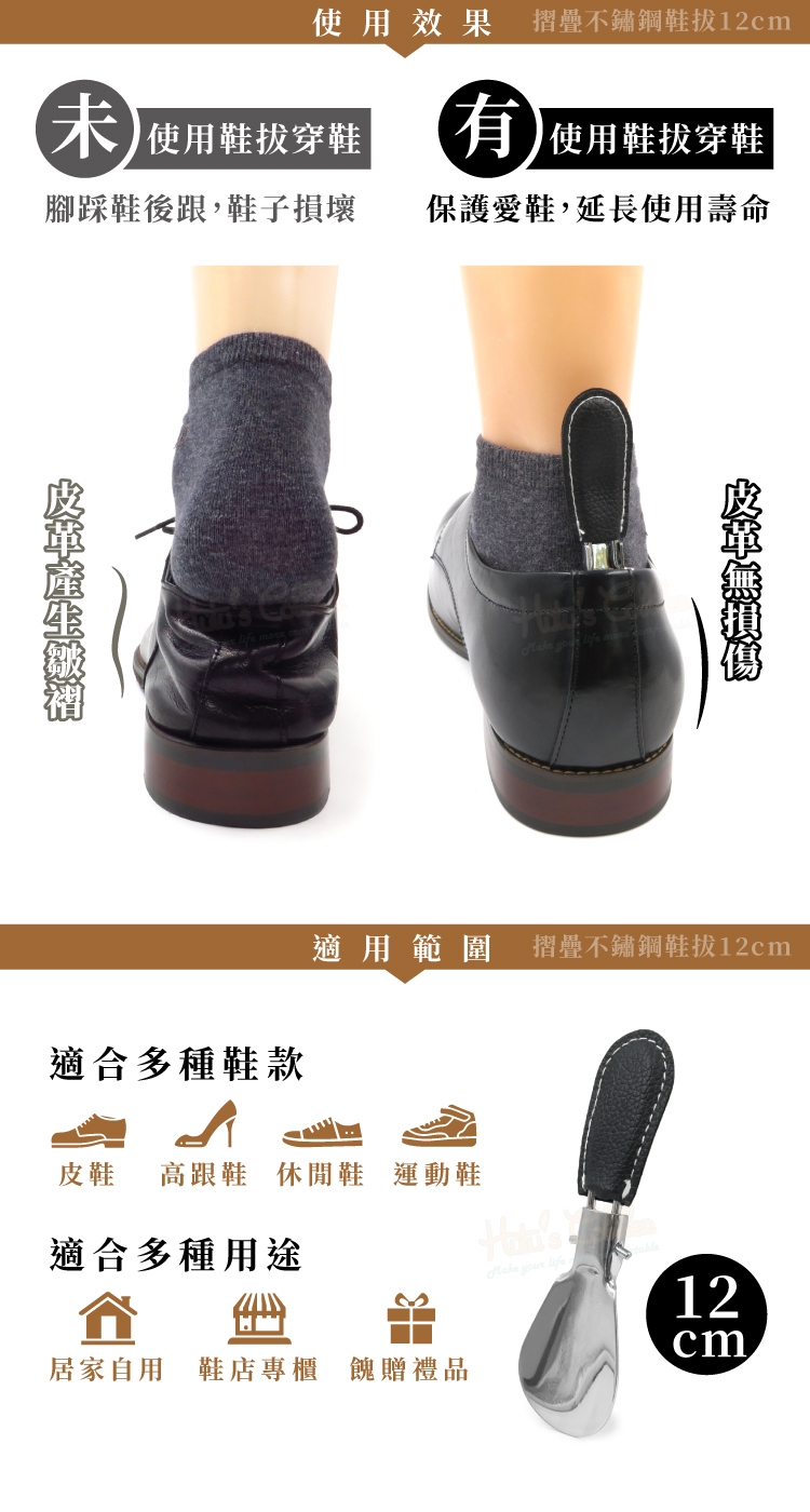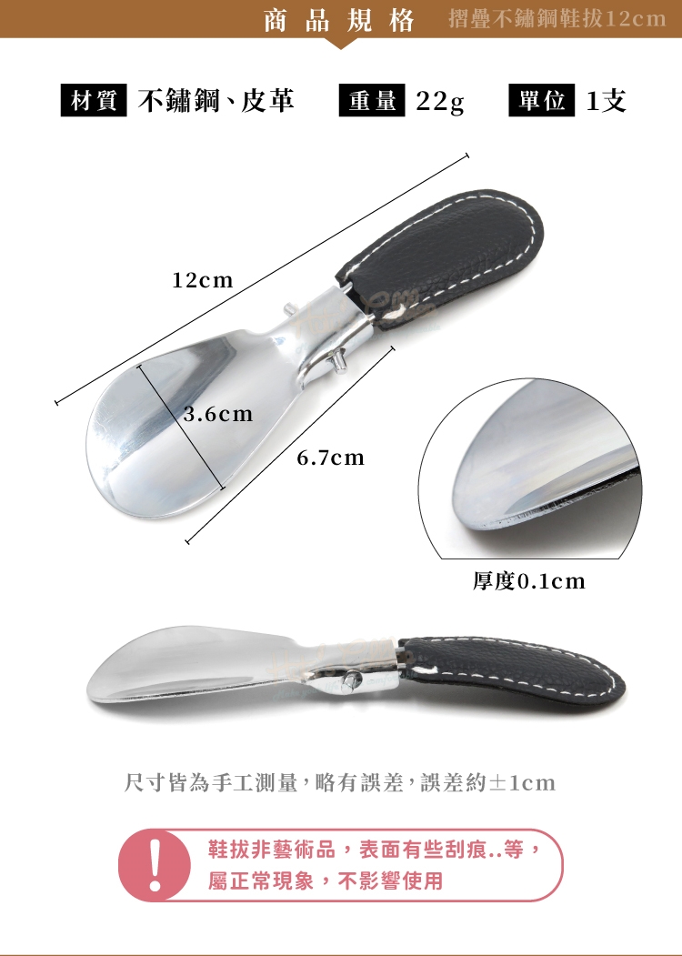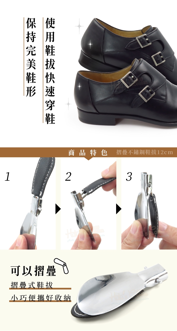 皮革包覆不鏽鋼鞋拔,提升質感,