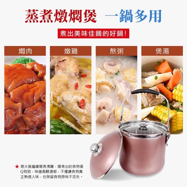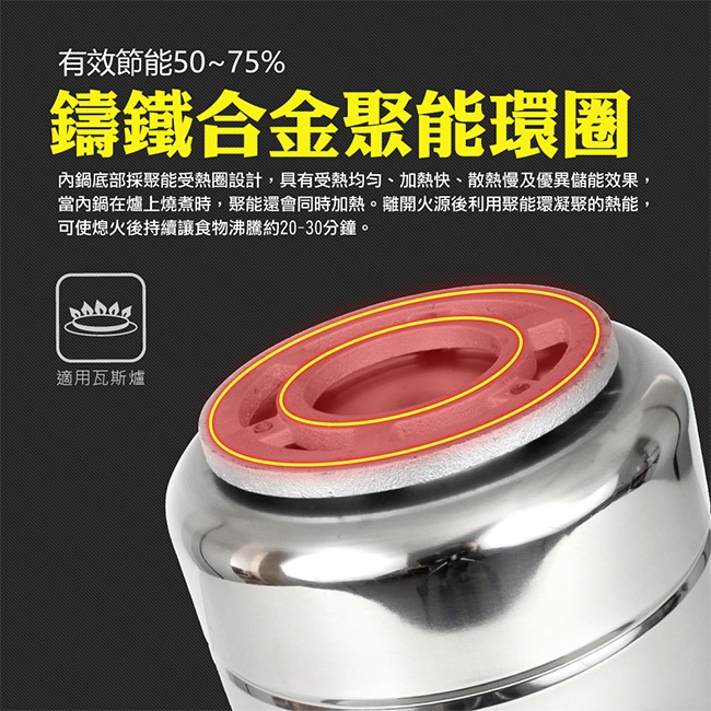2.沸騰後移入外鍋中,可免火再煮、持續燜燒,輕鬆省時免看火。