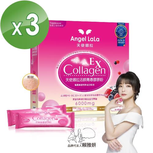 Angel LaLa 天使娜拉_EX活顏膠原粉x3盒(莓果風味/15包/盒)