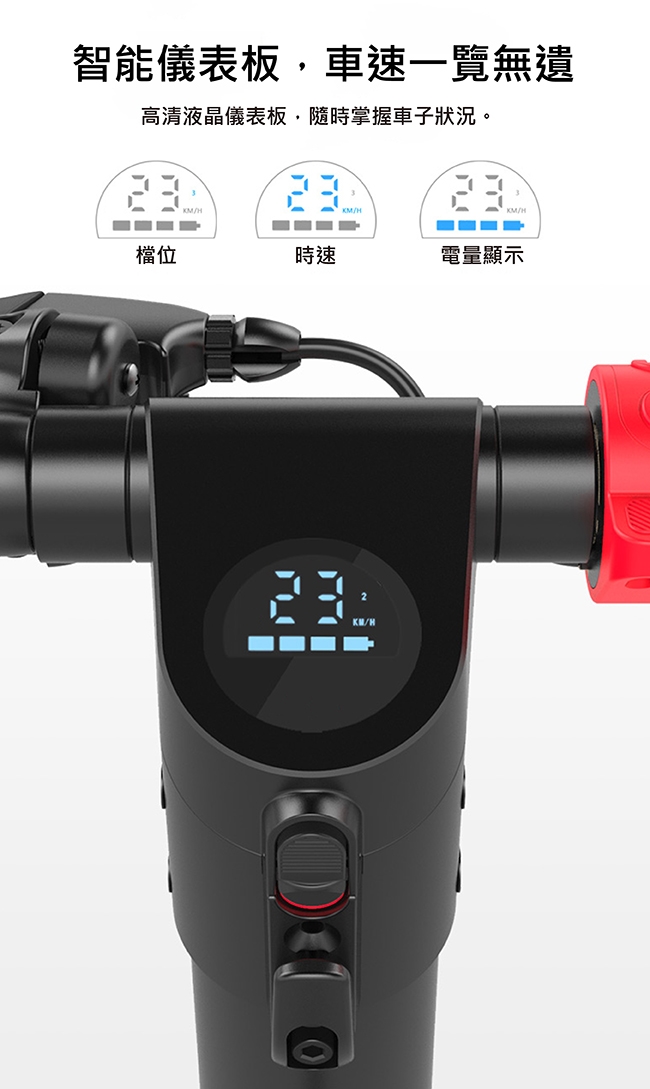 * 高清液晶屏,顯示里程、速度、電池容量