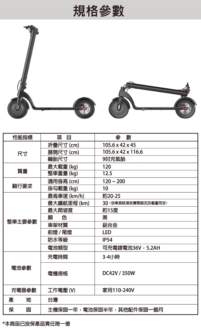 主機保固一年(不含橡膠輪胎等耗材配件)