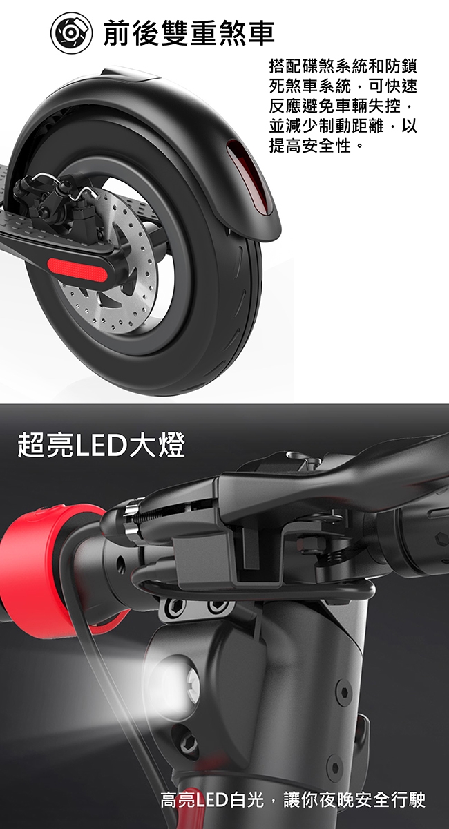 3. 行駛速度請勿超快,建議採用前後輪同時剎車,以縮短