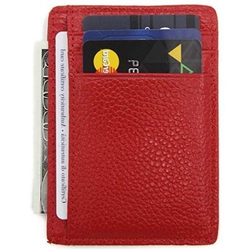 【Love 21】2019男時尚真皮紅色薄型信用卡夾