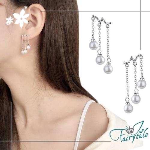 【伊飾童話】三層珍珠*銅電鍍銀流蘇耳環