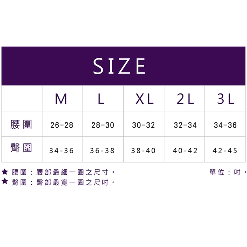 ◆建議消費者穿著對照尺寸表(吋):