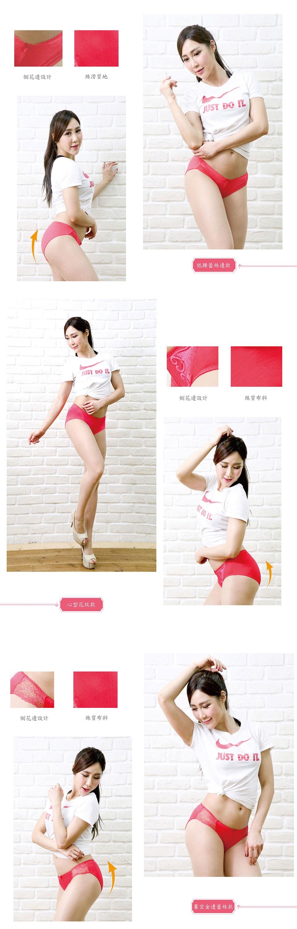 此商品為6件組喜氣紅色蠶絲內褲(蕾絲款式隨機出貨)