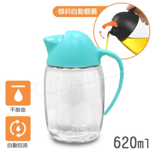 ZETON 自動開合 防漏回流 企鵝型 油瓶 油壺 醬油瓶 醋瓶 酒壺 調味瓶-620ml-天藍色